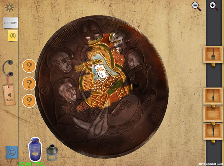 The aesthetic of Relic Restorer immerses you in the world of the antiques, the museums, the library, where all the stuff is classified, labeled, organized. Elegant concept graphic design and user interface mobile devices.